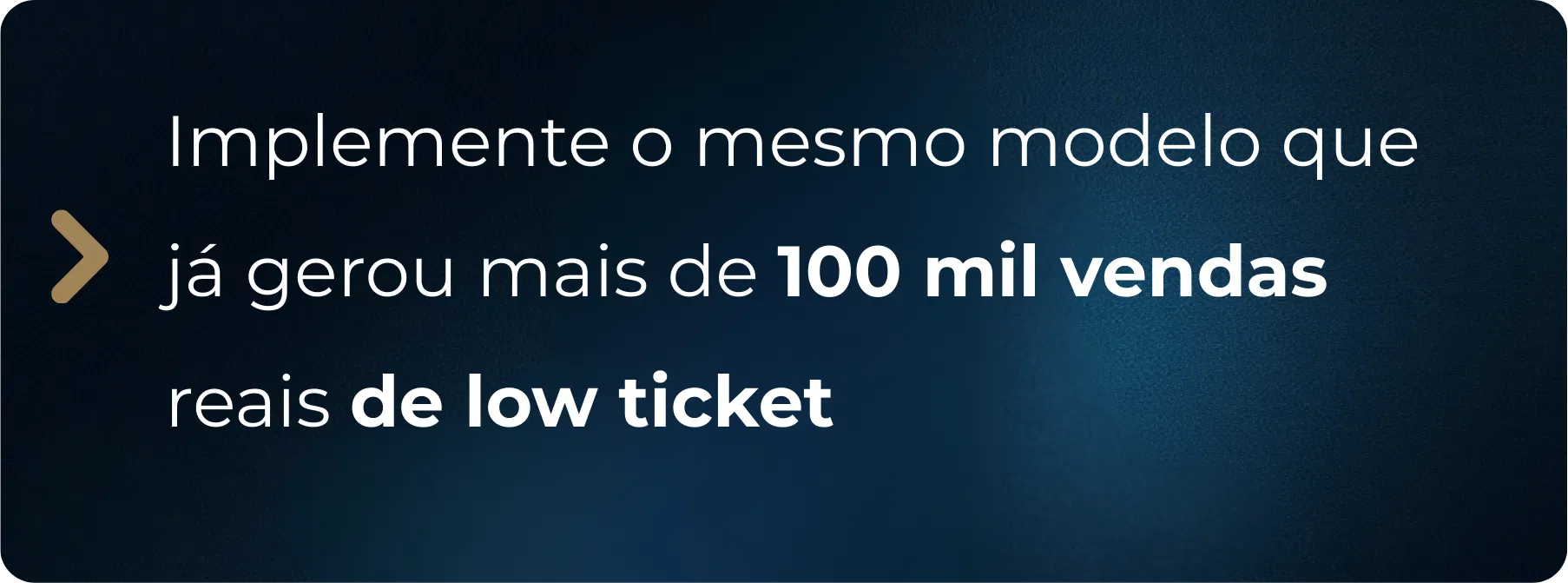É um processo completo, com acompanhamento, correção e execução para você sair do zero ou destravar seu negócio low ticket e ter vendas no tráfego pago.
