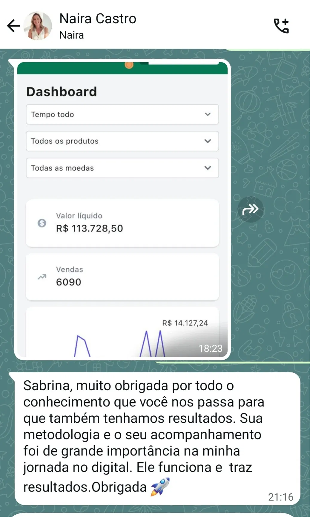 Foi ao longo dessa jornada que saí do zero e consegui alcançar um faturamento expressivo. O que me motivou foi a possibilidade de ajudar outras pessoas a descobrirem que também podem conquistar a independência e realizar sonhos por meio do marketing digital.